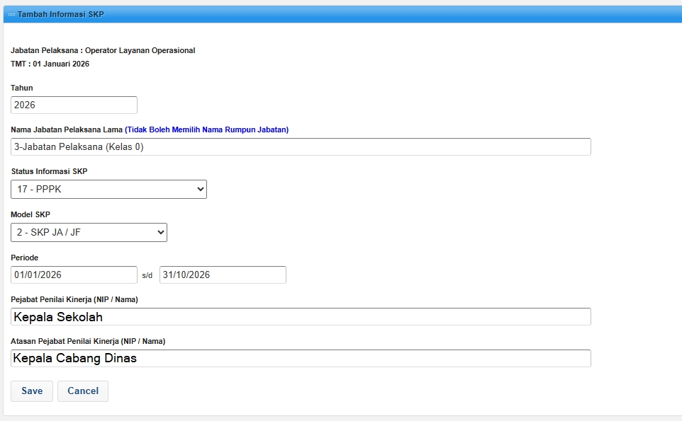 - Setting tahun SKP (2026) klik save