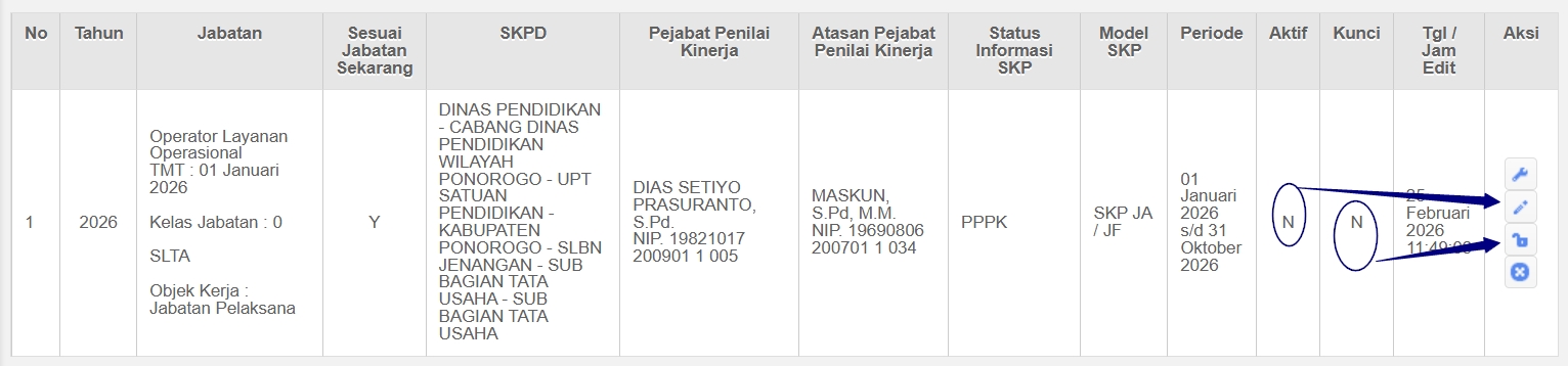 - Jika sudah aktif (Y) lanjut ke menu SKP